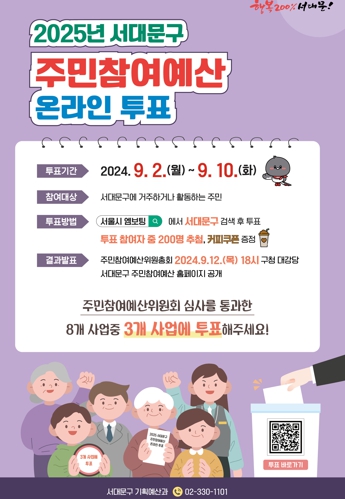 [뉴스서치] 서대문구가 이달 10일 자정까지 2025년 주민참여예산사업 선정을 위한 온라인 주민투표를 진행한다.