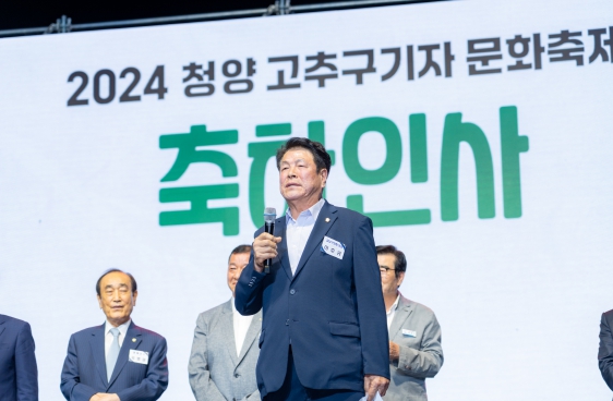 ▲ 지난 30일 ‘2024 청양 고추구기자 문화축제 개막식’에서 이호귀 의장이 축하인사를 하고 있다. |