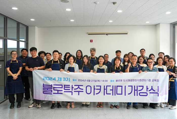 [뉴스서치] 대구 동구청은 지난 6월 27일 불로동 도시재생뉴딜사업 창업·기술전수교육의 일환으로 추진하는 ‘2024 제3기 불로탁주아카데미(기초과정)’ 개강식을 가졌다.