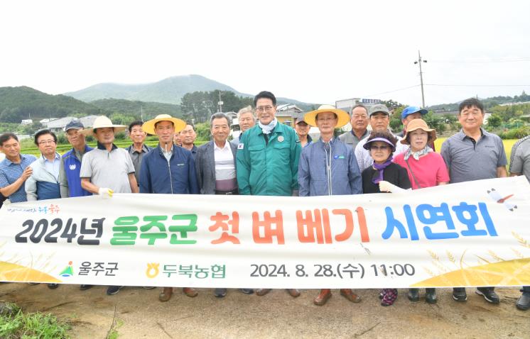 [뉴스서치] 울산시 울주군이 28일 두서면 신전 들녘에서 이순걸 군수와 지역 농업인 등이 참석한 가운데 ‘2024년 첫 벼 베기 행사’를 실시했다.