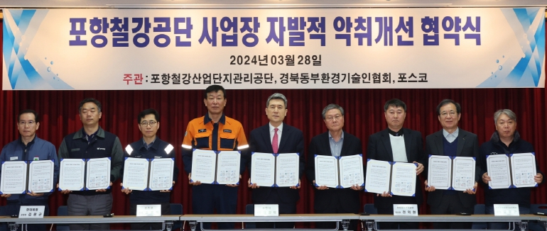 포항시는 28일 포항철강관리공단 대회의실에서 ‘철강공단 사업장 자발적 악취개선 협약식’을 맺고, 자발적 악취개선 노력에 민관이 함께 힘을 모으기로 했다.