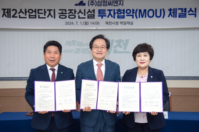 [뉴스서치] 제천시는 7월 1일 제천시청에서 소재·부품·장비 전문기업인 주식회사 삼정씨엔지와 제천 제2산업단지 공장 신설 투자협약(MOU)을 체결했다.