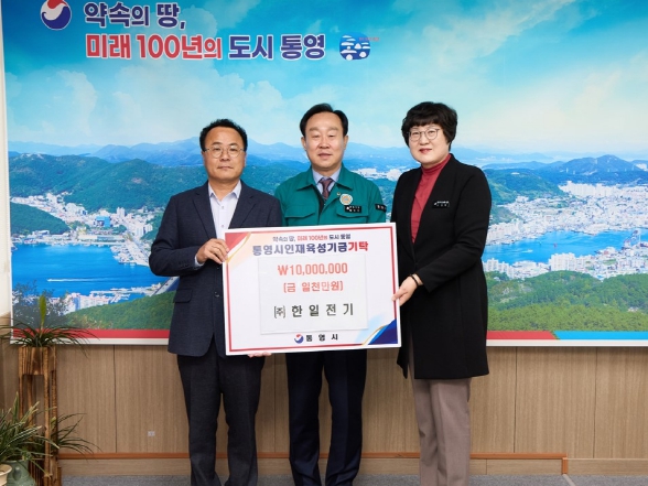 [뉴스서치] ㈜한일전기는 26일 통영시를 찾아 인재육성기금 1000만 원을 기탁했다.