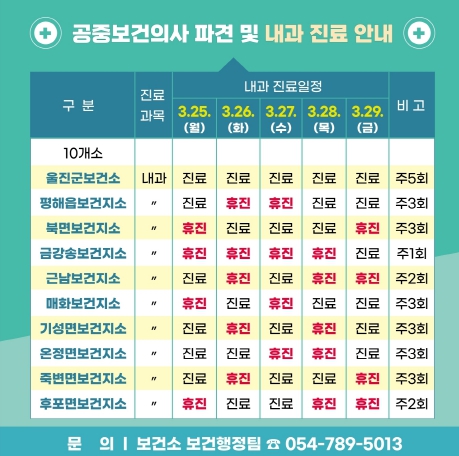 보건지소 진료 문의 사항은 울진군 보건소나 각 보건지소로 연락하면 된다.