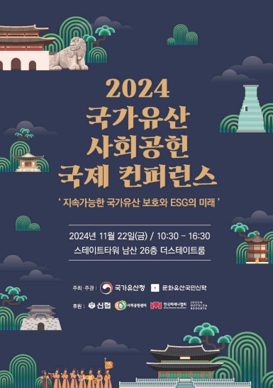 [뉴스서치] 국가유산청은 문화유산국민신탁과 함께 11월 22일 오전 10시 30분 스테이트타워남산(서울 중구)에서 '2024 국가유산 사회공헌 국제 학술대회(컨퍼런스)'를 개최한다.