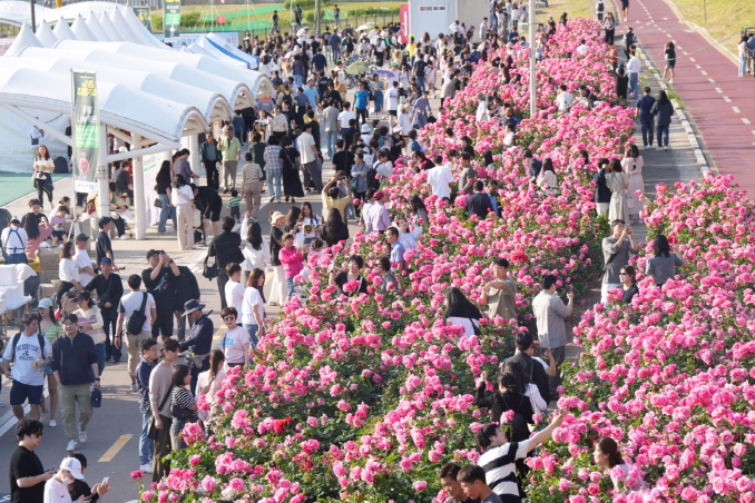 ▲ 2024 중랑 서울장미축제가 열리고 있는 중랑천 일원에서 축제를 즐기고 있는 시민들의 모습 |