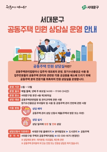 ▲ 서대문구 공동주택 민원 상담실 운영 안내문 |