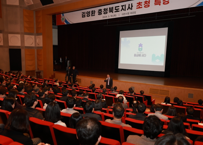 이날 특강은 대전시 직원 300여 명이 참석한 가운데 약 1시간가량 진행됐으며, 충북도 주요 정책, 충청권 비전과 미래, 대전-충북 상생발전 및 협력 방향 등 순으로 진행됐다.