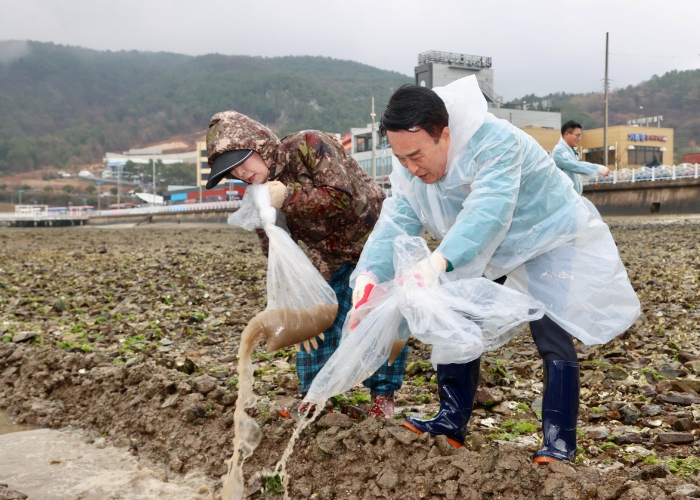 시는 25일 해양수산과, 실안어촌계 등 관계자 30여 명이 참여한 가운데 2000만 원의 예산으로 개불 수산종자 6만 7000여 마리를 실안어촌계 마을어장에 방류했다.