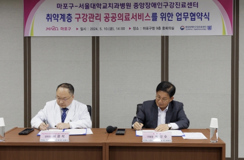 박강수 마포구청장은 “이번 협약을 통해 취약계층 구민이 전문적인 치과 치료를 받을 수 있는 공공의료서비스 연계체계를 구축하게 되어 매우 기쁘다”라며 “구강건강 사각지대에 놓이기 쉬운 분들에게 든든한 동반자가 되어주신 서울대 중앙장애인구강진료센터에 진심으로 감사드린다”라고 전했다.