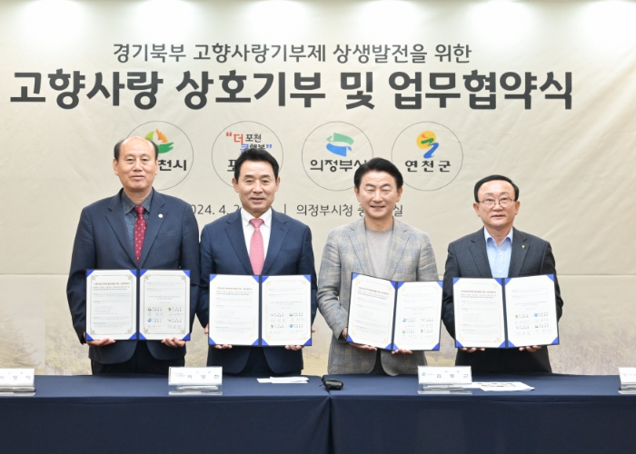 이날 협약식은 4개 시군이 고향사랑기부제 활성화를 위한 상호 협력 협약을 체결해 경기 북부 지역경제의 발전을 촉진하고자 마련됐으며, 협약식에선 각 시군의 대표 답례품 전시와 단체장 간 상호기부 기탁식(총 기부액 600만 원)도 함께 진행됐다.