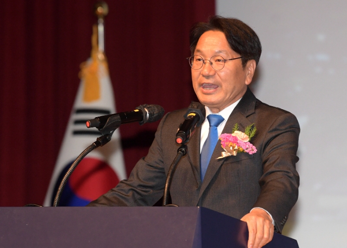 ▲ 강기정 광주광역시장이 7일 오후 시청 대회의실에서 열린 '주민자치연합회 회장단 이‧취임식'에 참석해 축사를 하고 있다./광주광역시 제공 |