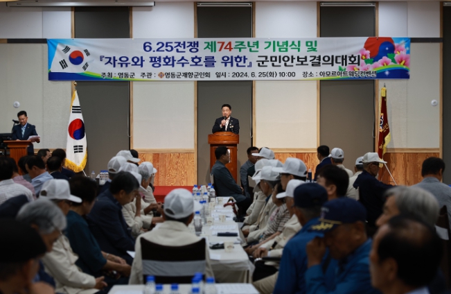 [뉴스서치] 충북 영동군은 지난 25일 6.25전쟁 제74주년을 맞아 영동읍 아모르아트 웨딩컨벤션에서 기념행사를 개최했다.