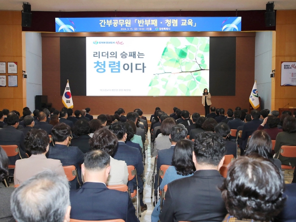 홍남표 창원특례시장을 비롯한 시 전체 5급 이상 간부 공무원 200여 명이 참석한 이번 교육은 간부 공무원의 청렴 정신을 함양함으로써 시 전체 부패 방지 및 청렴 문화 확산을 도모하기 위해 마련됐다.