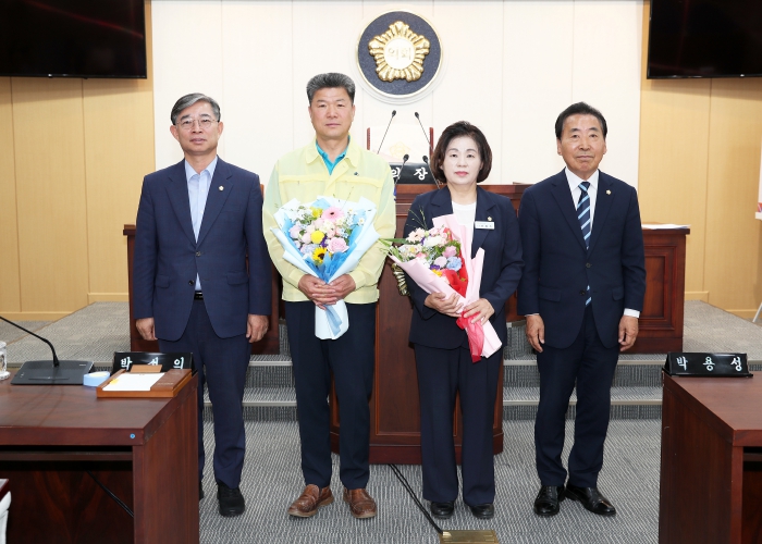 이날 후반기 의장단 선거는 재적의원 7명 중 4명이 투표에 참여했으며, 의장과 부의장 모두 각각 4표를 얻어 당선이 확정됐다.