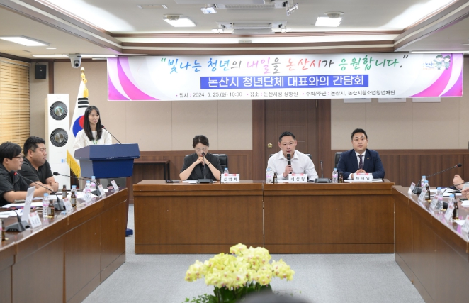 [뉴스서치] 논산시청소년청년재단은 25일 논산시 청년단체 대표들과논산시청 상황실에서‘2024년 논산시 청년단체 대표와의 간담회’를 가졌다.