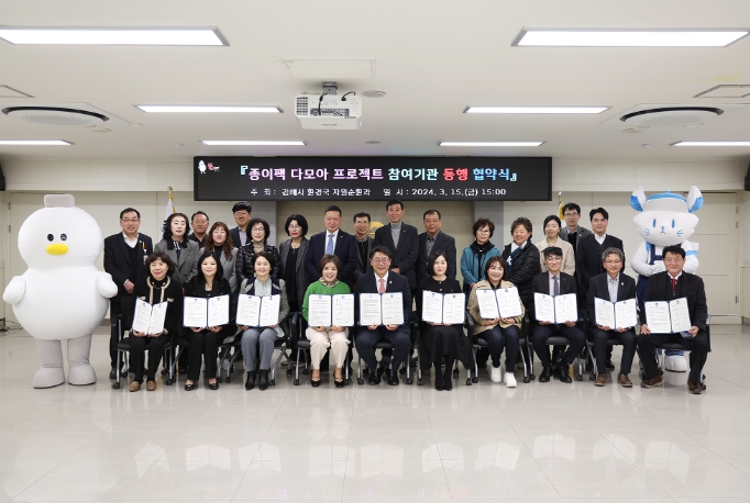 [뉴스서치] 김해시는 395개 요양원·어린이집·카페·공동주택, ㈜대흥리사이클링과 종이팩 재활용률을 높이기 위한 ‘종이팩 다모아 프로젝트 동행 협약’을 체결했다고 15일 밝혔다.