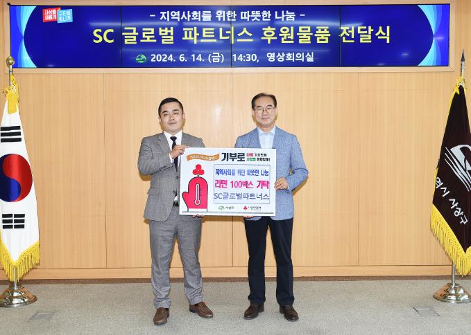 [뉴스서치] 부산 사상구는 지난 14일 SC 글로벌 파트너스(대표 이상철)로부터 취약계층을 위한 라면 100박스를 기탁받았다고 밝혔다.