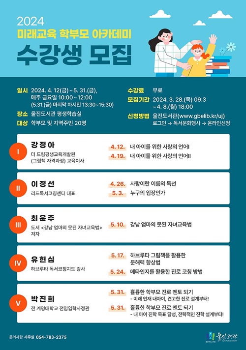 ▲ 울진도서관 2024년 미래교육 학부모 아카데미 수강생 모집 안내 |
