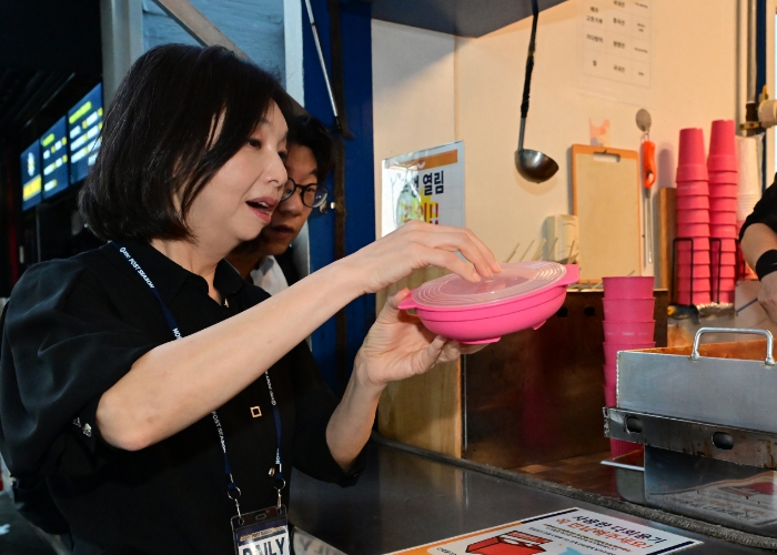 현장을 꼼꼼하게 살핀 최호정 의장은 “많은 관중이 이용하는 시설이라 제대로 운영이 되고 있을까 우려가 있었는데 생각보다는 다회용기 사용과 수거가 잘 이뤄지고 있는 것을 확인할 수 있었다”라며, “일회용품 사용 줄이기에 대한 시민 인식을 확대하고 환경보호를 위해 보다 많은 시설에 도입을 확대하는 방안을 강구하겠다”라고 말했다.