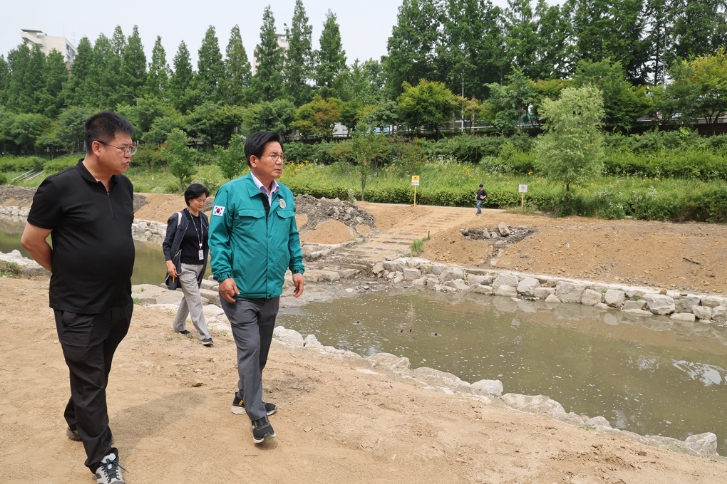 ▲ 박강수 마포구청장, 우기 대비 월드컵천 정비 공사현장 점검 |
