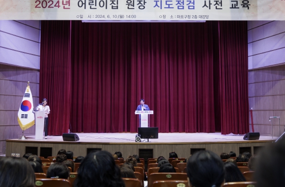 [뉴스서치] 박강수 마포구청장은 10일 오후, 마포구청 대강당에서 열린 ‘2024년 어린이집 원장 지도점검 사전교육’에 참석했다.