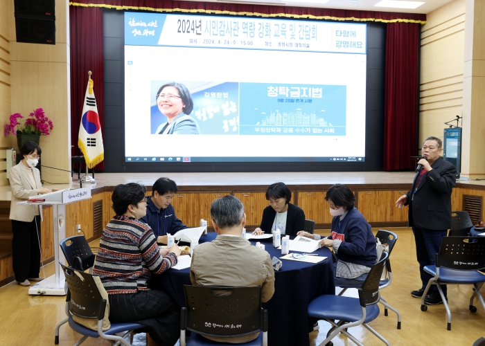 [뉴스서치] 광명시는 24일 시청 대회의실에서 시민감사관 35명이 참여한 가운데 생활밀착형 점검 과제를 발굴하기 위한 간담회와 역량 강화 교육을 진행했다.