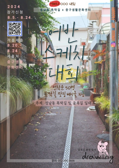 첫 순서로 8월 5일부터 8월 24일까지 성남동의 아름다운 골목길 풍경을 주제로 한 ‘어쩌다 어반스케치 대회’가 열린다.