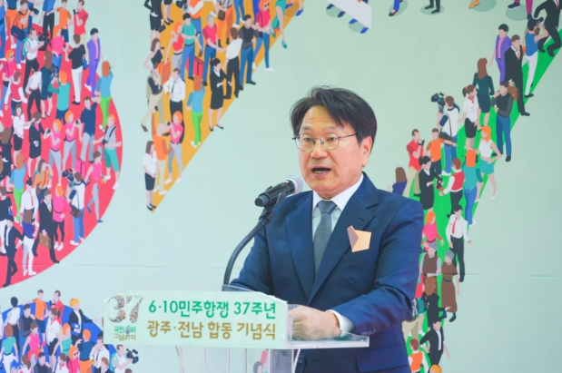 강 시장은 10일 오전 동구 금남로공원에서 열린 ‘제37주년 6·10민주항쟁 광주·전남 합동기념식’에 참석해 “6·10민주항쟁은 현재진행형이다. 정치도 우리의 힘으로 바꾸고, 개헌도 우리의 손으로 해냈던 것처럼, 또 해내야 할 때이다”며 개헌의 필요성을 역설했다.