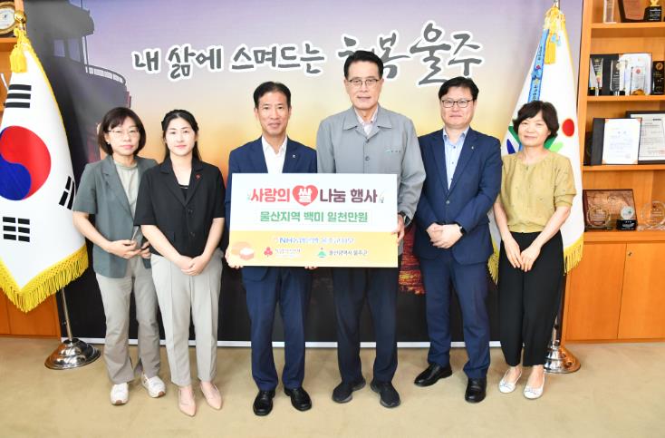 이순걸 울주군수는 “지역사회와 상생을 위한 NH농협은행 울주군지부의 지역공헌활동에 감사드린다”며 “앞으로도 울주군과 지역 기업·기관이 상생할 수 있도록 적극적인 협력을 당부드린다”고 전했다.