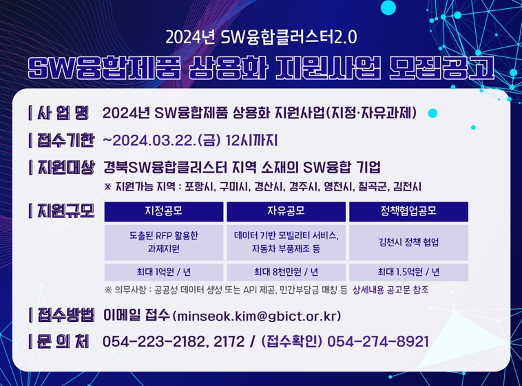 보다 자세한 내용은 포항TP 경북SW진흥본부로 문의하면 된다.