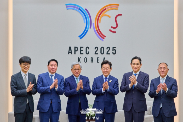 [뉴스서치] 이재명 대통령은 10월 31일 오후 2시 경주 APEC 정상회의를 계기로 방한한 젠슨 황 엔비디아 대표를 만나, 대한민국 AI 인프라를 비롯한 생태계 전반의 혁신 방안에 대해 의견을 교환했다. 이 자리에는 삼성전자 이재용 회장, SK 최태원 회장, 현대차그룹 정의선 회장, 네이버 이해진 의장이 함께했다.