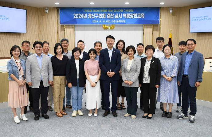 [뉴스서치] 광산구의회가 11일 2023회계연도 결산승인안 심사를 앞두고 전문 강사를 초청하여 의원 역량 강화 교육을 실시했다.