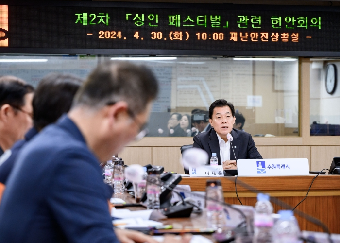 [뉴스서치] 수원시는 4월 30일 시청 재난안전상황실 제2차 성인페스티벌 관련 현안 회의를 열었다.