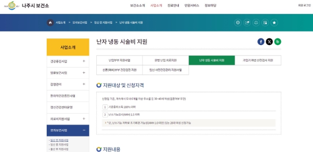 ▲ 나주시보건소 누리집 모자보건(임신 전 지원사업) 사업 안내 갈무리(사진제공-나주시) |