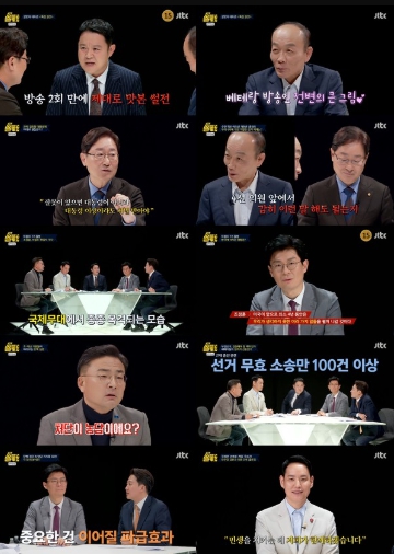 이어진 ‘특집 썰전’의 스페셜 코너 ‘여야의 밤’에서는 김한규 의원, 국민의힘 조정훈 의원, 조국혁신당 신장식 의원, 개혁신당의 이준석 의원이 요즘 뉴스를 뜨겁게 달구는 부정 선거 음모론에 대한 견해를 밝혔다.