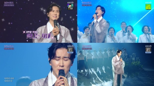 이후 신유는 짙은 감성이 가득 담긴 '삶' 무대를 선보였다. 내레이션과 함께 시작한 무대에서 신유는 울림 있는 목소리와 시원한 가창력으로 무대를 빛냈고, 시니어 합창단이 등장해 더욱 풍성하고 호소력 짙은 무대가 완성됐다. 이에 신유는 1승을 거뒀다.