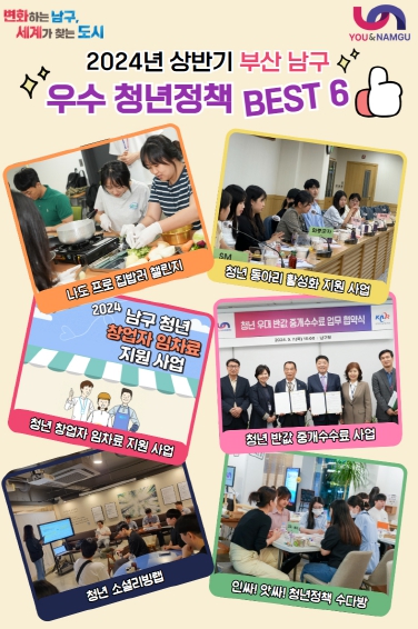 [뉴스서치] 부산 남구는 2025년 청년정책 사업 구상을 위해 올해 사업을 점검하면서'2024년 상반기 남구만의 우수한 청년 정책 베스트 6'을 소개했다.