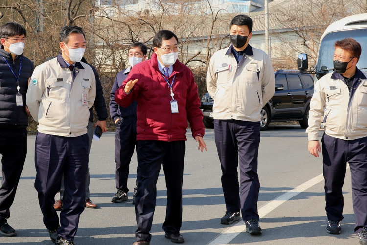 ▲ 주낙영 시장이 지역의 한 기업체 현장을 방문하고 있다. |