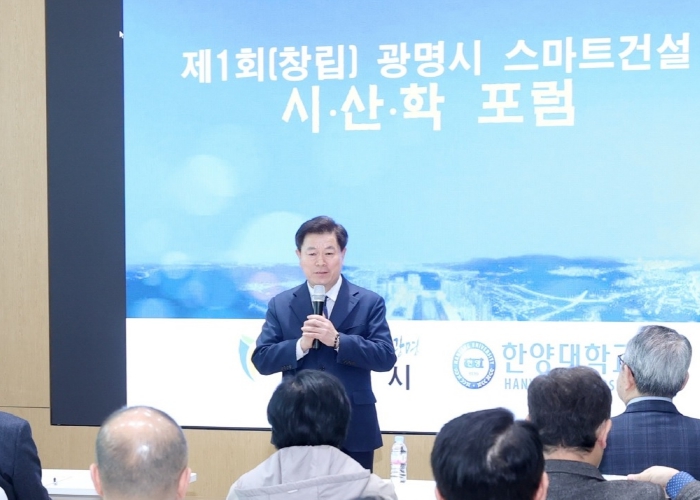 시는 19일 오후 철산 지하공영주차장 내 광명시 인생플러스센터 플러스강당에서 ‘광명시 건설업체 수주 활성화 및 탄소중립 선도 전략’을 주제로 제1회 시·산·학 포럼을 개최했다.