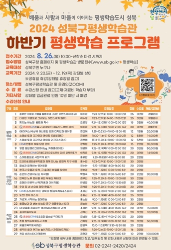 ▲ 성북구평생학습관 하반기 수강생 모집 26일 시작…9/20부터 29개 강좌 펼쳐져 |