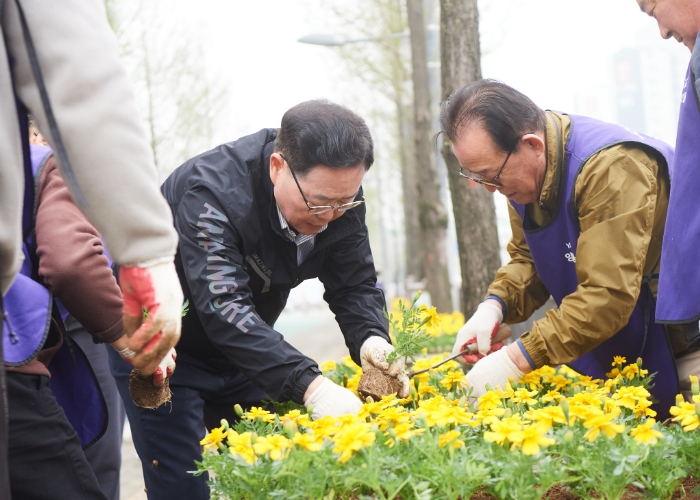 ▲ 강수현 양주시장, 양주2동 사회단체 주관 ‘환경정비 및 꽃심기’행사 참석 |