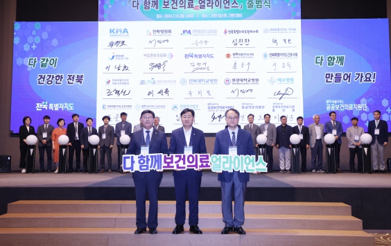 전북자치도는 15일 오후 2시 그랜드힐스턴호텔에서 지역 특성을 고려한 실효성 높은 보건의료 정책 발굴과 추진을 위해 민-관-연 21개 기관과'다함께 보건의료 얼라이언스'협약을 체결하고 3개 분과 운영을 시작하는 출범식을 개최했다.