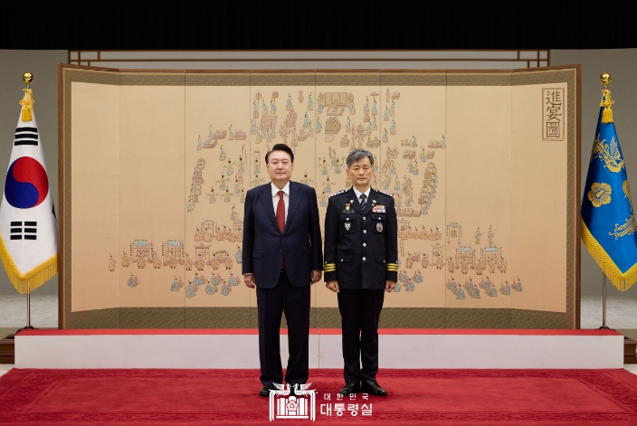 [뉴스서치] 8월 12일 윤석열 대통령은 용산 대통령실에서 조지호 신임 경찰청장에게 임명장을 수여했다.