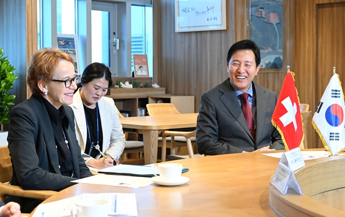 [뉴스서치] 오세훈 서울시장은 8일 11시, 집무실에서 에바 헤어초크 스위스 상원의장을 비롯한 방문단을 만나 서울시와 스위스의 공통 관심 정책을 논의했다.
