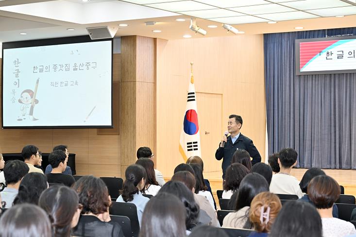 [뉴스서치] 울산 중구가 7월 25일 오후 2시 중구청 대회의실에서 직원 250여 명을 대상으로 한글교육을 실시했다.