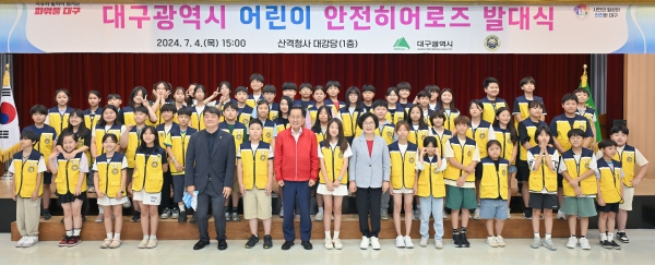 [뉴스서치] 대구광역시는 어린이의 눈높이에서 학교 주변 위험신고 등 어린이가 스스로 안전문화 활동에 참여하도록 유도하기 위해 ‘어린이 안전히어로즈’를 결성하고, 7월 4일 오후 3시 산격청사 1층 대강당에서 발대식을 개최했다.