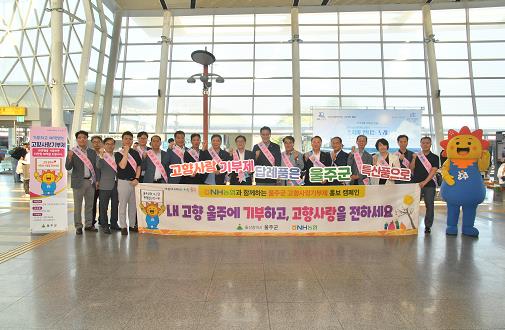 이날 캠페인 참가자들은 KTX울산역 이용객에게 고향사랑기부제도와 울주군 답례품을 소개하는 리플렛을 배부하고 기부 참여를 안내했다.