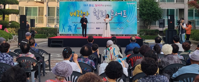 달서구문화원에서 주관하고 달서구, 달서구의회, 푸른방송(주)의 후원을 통해 진행되는 베란다힐링콘서트는 올해 지역 내 9개 아파트에서 신청해 그 어느때보다 뜨거운 열기를 보였다. 그 중 3개 아파트단지가 선정가 지난 3일간 진행했다.
