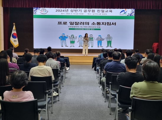 [뉴스서치] 울산 남구는 지난 14일 6층 대강당에서 전 직원을 대상으로 ‘2024년 상반기 공무원 친절교육’을 실시했다.